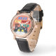Uhr, Klassische Damenuhr mit schwarzen Lederarmband