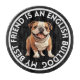 Rufen Sie alle Hundefreunde an! Dieses Hund-Design zeigt den bezaubernden englischen Bulldog auf einem schwarzen Kreis mit weißem Rahmen und die Worte: "Mein bester Freund ist ein englischer Bulldog." Es ist das perfekte Geschenk für jeden Tierbesitzer.