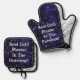 Phantastisches Sternenbild, ist auf diesem Ofen Mitt und Pot Inhaber Set für Vatertag! Mit der Nachricht "Bester Grillmeister im Universum!" macht dies auf beiden Seiten zu einem großartigen Geschenk für den Vatertag, Geburtstage oder sich selbst nutzen! Set hat auch silbergesteppte Wärmeschutz und hängende Schleifen.