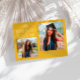 Modern and whimsical graduation announcement photo card featuring2 photos on the front and 1 on the back. The text says "The Best Is Yet To Come" with twinkling stars. Add the graduate's name, information, and message to personalize this card. Yellow color.