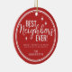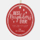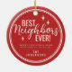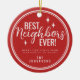 Best Neighbors Ever Retro Red and White Ceramic Ornament. Celebrate your amazing neighbors this holiday season with this 'Best Neighbors Ever!' Christmas ornament. The festive red background is adorned with elegant white script and stars, creating a charming design that's perfect for expressing gratitude. This ornament reads 'Merry Christmas from Our Family to Yours' and includes space for a family name, making it a truly thoughtful and personalized keepsake. It's a wonderful way to show appreciation and spread holiday cheer to the special people who make your neighborhood feel like home. This festive piece will be a cherished addition to any Christmas tree.