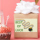 Best of Luck Greeting with 4-leaf clovers and rainbow stripes leading to pot of gold coins