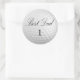 Rundaufkleber mit dem Bild eines weißen Golfballs mit dem anpassbaren Satz "Best Vater 1". Siehe dazu passende Gefälligkeitstafel und -marke. Sehen Sie sich die gesamte Sammlung des Vatertags-Stickers in den INVITES an | Aufkleber und Etiketten.