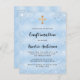 Um eine Bestätigung zu erhalten, feiert man einen Jungen. Ein blaues Imitat mit metallischem Hintergrund. Mit blauen Imitaten Glitzer Staub. Personalisieren Sie den Namen und die Details und fügen Sie diese hinzu. Der Name und die Bestätigung werden mit einem handgeschriebenen Stift geschrieben