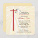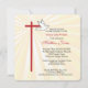 Schöne Einladungskarte für die Bestätigung Ihres Sohnes. Goldene Strahlen leuchten hinter einem Kreuz in Rot und einer weißen Taube. Das Rot ist die Farbe der Bestätigung und die Taube symbolisiert den Heiligen Geist. Personalisieren Sie den Text, um ihn für Ihre Bedürfnisse für seine Bestätigung perfekt zu machen. Die Ecken dieser quadratischen Karte werden abgerundet und fügen ein zusammenhängendes Element mit den abgerundeten Kanten des Kreuzes hinzu.