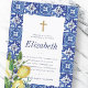 Besteht aus Serifen und kursiver Schriftzeichen-Typografie. Vor dem Hintergrund der blauen und weißen spanischen Fliesen mit grünen Blätter, Zitronen und wilden Blume botanicals. Dieses wurde von Select Party Supplies entworfen, exklusiv für Zazzle. Abrufbar unter: http://www.zazzle.com/store/selectpartysupplies