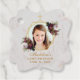 Dieses elegante, geometrische, florale religiöse Design hat ein austauschbares Girl-Foto in einem unregelmäßigen Goldrahmen aus zwei goldenen Hexagonen, die überlagern, mit einem goldenen Kreuz an der Spitze und mit Blume Bouquets von weißen Lilien darüber, rechts und unten links. Unter dem Rahmen wird der Name in einem eleganten kalligrafischen Skript geschrieben, die Erholung in Kappen. Der gesamte Text ist golden. Der Hintergrund ist aus weißem Marmor. Auf der Rückseite ist eine Dankeschön-Nachricht, in der gleichen goldenen Kalligraphie, auch auf weißem Marmor. Die bordeauxroten und weißen Pfannkuchen werden vom Maler und Botaniker Pierre-Joseph Redouté (1759-1840) gemalt und befinden sich nun im öffentlichen Bereich. Das Platzhalter-Foto eines Teenagers, das lächelt, wird von Tawny Nina Botha von Pixabay gehalten und es ist kostenlos für kommerzielle uns