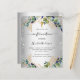 Ein Imitat silber aussehender Hintergrund mit eukalyptusgrünen und goldenen Blätter und Imitaten verziert silberne Glitzer Glitzern. Ein goldenes Kreuz. Personalisieren und einen Namen und Zeremonie Details.