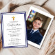 Feiern Sie diesen heiligen Meilenstein mit der Confirmation Royal Blue White Minimalistisch Foto Einladung. Dieses Design mit einer kühnen, königsblauen und weißen Farbpalette empfängt Sie in einer modernen, minimalistischen Ästhetik, die sich perfekt für die Bestätigung eines jungen Jungen eignet. Ein personalisiertes Foto fügt eine herzliche Touch hinzu, während die gepflegte Anordnung und die raffinierte Typografie ein zeitloses, elegantes Ambiente garantieren. Diese Einladung ist mit dem Namen Ihres Kindes, den Zeremoniell-Details und den UAWG-Informationen vollständig anpassbar und ist eine stilvolle und sinnvolle Art, Liebende zu diesem besondere Anlass einzuladen.