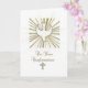 Eine Bestätigungskarte mit Taube in Gold und Weiß mit goldenem KreuzAkzent.