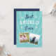 Feiern Sie einen geliebten Abuelo an diesem Vatertag mit diesem coolen Foto-Kartendesign, das zwei Fotos seiner Enkel mit dem Satz "Bester Abuelo aller Zeiten" in weiß und blau Schrift auf einem Aquarell-Hintergrund zeigt. Fügen Sie der Rückseite eine benutzerdefinierte, vorgedruckte Nachricht hinzu.