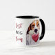 "Best DOG Mama" erklärt diese niedliche Tasse im Zentrum. Das Bild auf beiden Seiten ist ein bezaubernder Beagle, der über einen Holzzaun schaut und ein glänzendes rotes Herz bietet. Perfekt für den Muttertag oder ihren Geburtstag! Der gesamte Text ist anpassbar, sodass Sie ihn auch zum Vater am Vatertag ändern können.