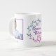Beste Bonus-Mama je zwei Foto-Template Riesenkaffee-Tasse Nicht nur eine Stepama - eine Bonus-Mama! Passen Sie Ihre Bonus Mama Tasse mit zwei Fotos an und fügen Sie individuelle Name hinzu, um sie besonders zu machen. Eine nachdenkliche und lustige Art, Ihre Stiefmutter schätzen zu lassen. Es ist ein perfektes Geschenk für den Muttertag, ihren Geburtstag, Weihnachten oder einfach nur zu danken, dass Sie dort sind. Stilvolles rosa, lila und blaues Ober-Farbverlauf mit zartem botanischem Krängungsrahmen.