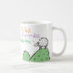 Tasse mit Gewerbe oder Beruf. Der sonnige Cartoon eines Schafes auf einem Hügel. Das Schaf sagt "Best Baa None". Design-Wiederholungen auf beiden Seiten