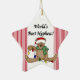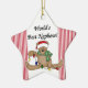 Der beste Neffe der Welt kennzeichnet kundengerechte Teddybärn-Entwurfsandenken-Feiertagsverzierung einen Teddybären mit Feiertagslichtern und eine Strumpfkappe und ein Bereich auf der Rückseite der Verzierung, in der Sie ihn mit einem Namen und ein Jahr oder ein Datum oder anderer Text leicht personifizieren können!