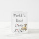 Mit dem Blick des gezeichneten Papier- und Kinderart-Schriftartes, hält ein entzückender Teddybär einen Bleistift und Text liest "die beste kleine Schwester der Welt" auf kleine Schwester T - Shirts, mousepads, Karten, Tassen, Aufklebern, Magneten, Taschentaschen und mehr.