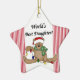Die beste Tochter der Welt kennzeichnet kundengerechte Teddybärn-Entwurfsandenken-Feiertagsverzierung einen Teddybären mit Feiertagslichtern und eine Strumpfkappe und ein Bereich auf der Rückseite der Verzierung, in der Sie ihn mit einem Namen und ein Jahr oder ein Datum oder anderer Text leicht personifizieren können!