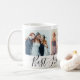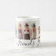 Auf einer Tasse mit weißem Kaffee sind 3 Fotos, die Frauenfreundschaft mit einem eleganten Drehbuch am unteren Ende des Textes ehren, die besten Freunde für immer, wo Sie den Titel und die Fotos nach Ihren Wünschen anpassen können.