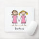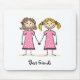 Zwei niedliche kleine Strichmännchenmädchen im Rosa kleidet das Halten der Hände. Text: Beste Freunde.