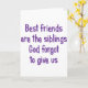 Wunderbares Geschenk für einen Freund, der immer dort gewesen ist. Dieses Sprichwort geht über BESTE FREUNDIN hinaus! Liest "beste Freunde sind die Geschwister, die Gott vergaß, uns zu geben."