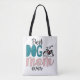 Trendy Tote Tasche mit einem schönen schlafenden Welpen mit der Aufschrift "Beste Hundemutter je" in aquamarinen, schwarzen und rosa modernen Schriftart. Die Rückseite ist mit niedlichen Pfosten geschmückt.