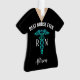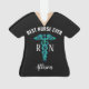 Best Nurse Ever Medical Caduceus Personalisiertes Ornament, das auf beiden Seiten mit türkisfarbenem Caduceus-Symbol in der Mitte und "RN"gestaltet ist. Schwarzer Hintergrund und "beste Krankenschwester je" in weißen Blockbuchstaben über der Oberseite der T - Shirt-förmigen Verzierung. Personalisiert mit dem Namen der Krankenschwester in elegantem Skript-Schriftart auf der unteren Fläche. Eine tolle Geschenkidee für eine Anmeldung zu Weihnachten, zum Nurse's Day, zum Geburtstag oder zu jedem Anlass.
