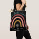 Personalisiert Teacher Wertsack Tasche, die mit einem boho wasserfarbenen Regenbogen und einer blassen Sonne, die unter dem Regenbogen durchschaut wird, Die sehr niedliche "Beste Lehrerin je" und der Name oder Monogramm des Lehrers