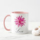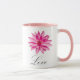 Ein zartes Design mit einer Rose-förmigen Lotus-Blume mit dem Wort Liebe unter ihm in elegantem schwarzen Cursive geschrieben. Ein minimales und gleichzeitig anmutiges Symbol für Schönheit und Zuneigung.