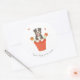 Fun Illustration für Frühling und Sommer für alle Hundefreunde. Ein australischer Hirte, der aus einem Blume-Topf herausspringt, umgeben von zwei Blume und Schmetterlingen.