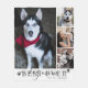 Erstellen Sie für die BEST DOG MAMA EVER eine Speicherdecke mit Keepake-Fotos. Dieses leicht hochzuladende Foto-Collage-Template enthält 4 Bilder und den Titel in einem modernen handgeschriebenen Schrift-Typografie-Design, das mit schwarz-grauem Pfosten versehen ist und mit dem eigenen Text vor einem weißen Hintergrund personalisiert ist. Ideal zum Gedenken an einen Muttertag für die Mutter eines Pelzbabys. HILFE: Für Hilfe bei der Änderung/Personalisierung des Designs, bei Farbänderungen oder bei der Übertragung des Designs auf ein anderes Produkt wenden Sie sich bitte an den Designer, BEVOR er die Bestellung über die Registerkarte MESSAGE des Zazzle-Chats vornehmen lässt, oder per E-Mail an makeitaboutyoustore@gmail.com.