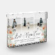 BESTE MAMA JE! Mit dieser hübschen Collage aus Foto und der Blumenausstellung erstellen Sie Ihren eigenen Foto-Glasblock. Laden Sie einfach 3 Ihrer Lieblingsbilder hoch, passen Sie die Nachricht an und personalisieren Sie, von wem sie stammt. Die Einrichtung besteht aus rosa und pfirsichfarbenen Blume mit botanischem Blattwerk.