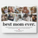Moderne Müttertafel mit einer Collage aus 12 Familienbildern, die Sie durch Ihr eigenes Foto ersetzen können, das Sprichwort "Beste Mutter aller Zeiten", eine personalisierte Danksagung, ein niedliches rotes Herz und Ihre Kindernamen.