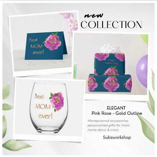 Elegant Pink Rose - Gold OutlineDesignt von Suki's World