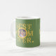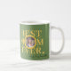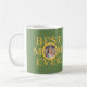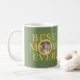 Gelbe Sonne mit Sonnenschein Happy Mother's Day Custom Foto personalisiert Best Mama Ever Natur Salbei grüne Sake Kaffee Tasse mit trendigem gelben goldfarbenen muffigen Typografie und eine handgeschriebene Schrift und Signatur.