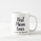 Beste Mama jemals personalisierte benutzerdefinierte Skript Text Kaffee-Tasse. Vollständig anpassbarer schwarzer Text, weißer Hintergrund. Ein tolles Geschenk für den Muttertag, den Sie mit den Namen Ihrer Familienmitglieder, Kinder, Kinder usw. den Untertext anpassen können