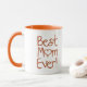 Schöne handgeschriebene beste Mama-überhaupt Tassen. Orange und Weiß mit Herzen.