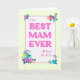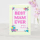 Eine hübsche Muttertagskarte für den BESTEN MAM aller Zeiten. Das Design hat einen gelben Karo Gingham Rand umgeben die Worte, 'To the BEST MAM EVER von uns allen, in magenta rosa Schrift auf einem leicht strukturierten weißen Hintergrund. In den Ecken gibt es helle, bunte Blume und ein kleines magentafarbenes rosa Herz. Die Insider-Meldung kann auf Wunsch angepasst oder gelöscht werden.