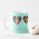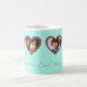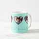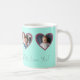 Entwerfen Sie Ihre eigene Foto-Tasse mit dieser niedlichen Aqua-Fotovorlage mit Platz für 4 benutzerdefinierte Fotos. Laden Sie Ihre Lieblingsbilder hoch und passen Sie den Namen mit Ihrer Personalisierung an. Ein großartiges Geschenk für Oma, wenn Sie Ihre eigenen Fotos der Enkel oder Haustiere hinzufügen! Ein aquamarines Aquabdeckung mit Glitzer-Hintergrund auf den Herzklopfen.
