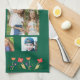 Niedlich Beste Oma Blume 5 Foto Collage Küchenhandtuch Keepake. Handgezeichnet Blume in schönen Frühlingsfarben und 5 Fotos auf grünem Hintergrund. Erstellen Sie Ihre eigene personalisierte Geschenkidee für eine Großmutter zum Muttertag, Geburtstag oder Weihnachten und fügen Sie Ihre Namen und Fotos hinzu.