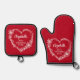 Einzigartiges Muttertag-, Weihnachts- oder Geburtstagsgeschenk für die beste Großmutter aller Zeiten, diese roten Topfhalter und Ofen-Mitte mit ihrem Namen in einem stilvollen weißen Drehbuch, "Beste Großmutter aller Zeiten" in eleganter weißer Typografie und einem weißen, herzförmigen Blumenkranz. Personalisieren Sie, ob sie Oma, Nana, Gigi, Grammie, etc. genannt wird. Falls erforderlich, bearbeiten Sie das Entwurfstool, um die Skriptgröße für längere oder kürzere Namen zu erhöhen oder zu verringern.