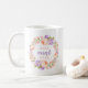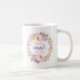 Niedliche Kaffeetassen am Muttertag personalisiert mit "Best Tante Ever" Zitat. Fügen Sie Ihren eigenen individuelle Name oder Nachricht in den hübschen Pastellrosa und lila Aquarellblütenkranz. Verwenden Sie die Designtools, um eine beliebige Hintergrundfarbe auszuwählen, die Schriftart und Farben zu bearbeiten und eigene Fotos hinzuzufügen, um ein Muttertagsgeschenk für Mama und Großmutter zu kreieren.