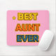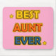Muismat met de tekst: Beste tante oit! Leuk als cadeau voor de beste tante van de wereld. Kleuren: Gel, oranje en blauw. Met een gele ster in de kleur geel.
