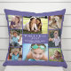 Geben Sie der weltbesten Tante ein lustiges Foto-Geschenk. Dieses lila Wurfkissen zeigt eine 8-Foto-Collage ihrer Nichten, Neffen, Familie, Haustiere, etc., ihre Namen und "Weltbeste Tante" und ob sie in der modernen weißen Typografie "Tante", "Tia" usw. genannt wird.