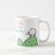 Tasse für einen Lehrer. Der sonnige Cartoon eines Schafes auf einem Hügel. Das Schaf sagt "Best Baa None". Design wiederholt sich auf beiden Seiten.