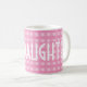 Ein Komfortgetränk in einer Tasse mit dem Gewebe, das für immer aushält, Gingham. Finden Sie rosaere Ginghameinzelteile Ladiebugs in der Herzlinie.