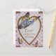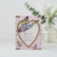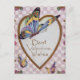 Die Vintage Valentinenkarte mit goldenem Herz und Schmetterlingen vor einem rosa Karo Hintergrund mit extravagantem Rand.