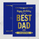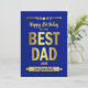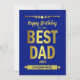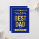 Eine Best Vater Flat Geburtstagskarte mit einem hübschen minimalistischen Typografie-Design aus metallischem Gold auf blauem Hintergrund. Ein schönes, schlichtes Design, ideal für jeden Vater. Passen Sie das Ereignis an und personalisieren Sie es mit einem Namen. Die Hintergrundfarbe kann bei Bedarf geändert werden. Ideal zum Geburtstag und zum Vatertag.