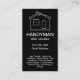 Klassische Handyman-Visitenkarten im vertikalen Format, erstellt mit einem coolen Haussymbol, das eine Handschrift mit Hammer und Schraubendreher sowie ein allgemeines Layout in einem fett modernen Design hat, das Sie online anpassen können. Funktioniert für einen Handyperson, berufliche Zuhause-Wartung, Bau- oder Umbauleistungen.