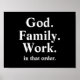 Das Zitat-Poster von Gott Familie. Inspiration und motivierend Prioritäten Poster. Was kommt zuerst im Leben?