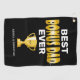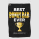 Modernes Golftuch für Stiefeletten an diesem Tag, oder Geburtstag, mit dem Text "BEST BONUS VATER EVER" in Gold und Schwarz, personalisiert mit Ihren Stiefelinitialen und Kindernamen (kann auch links werden leer).